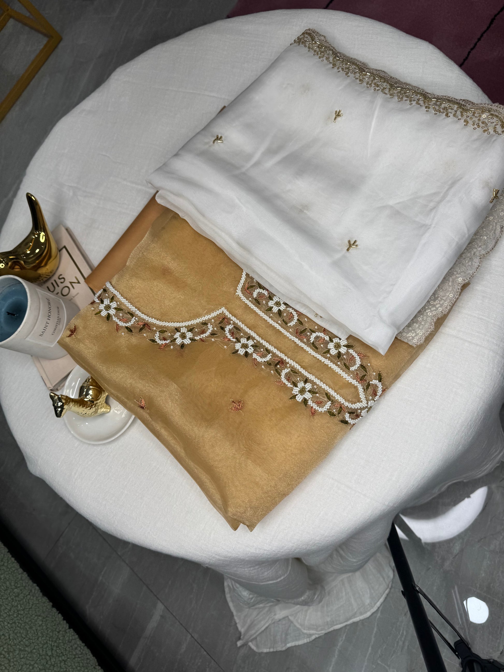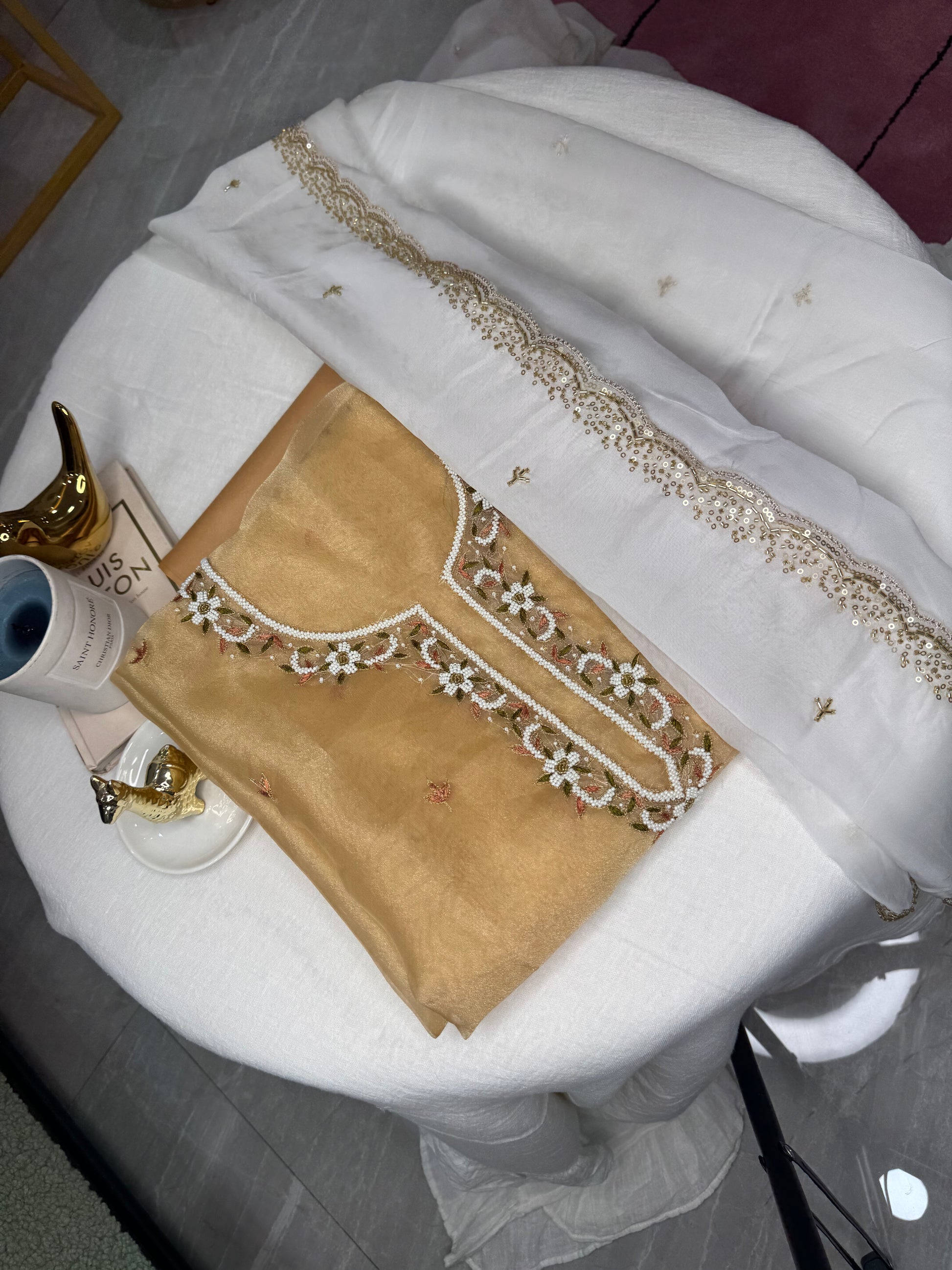 - Kurta: Embroidered unstitched fabric