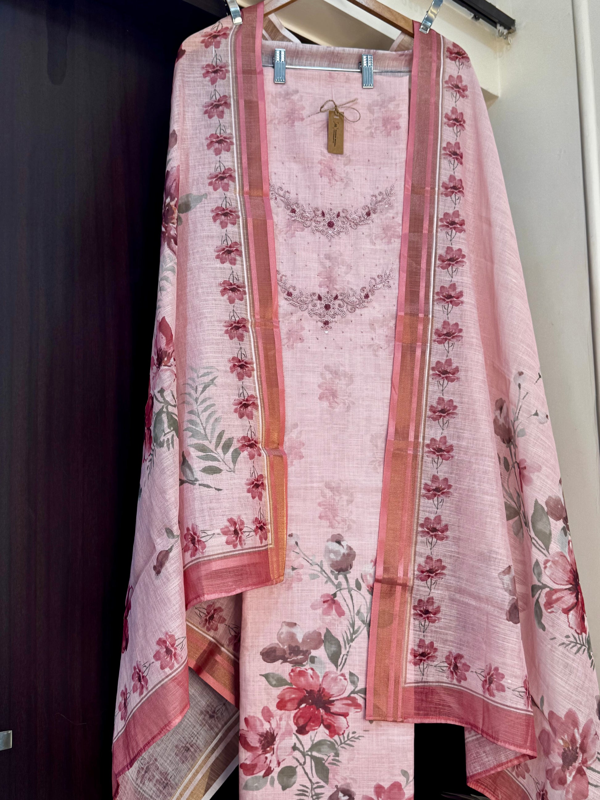 Soft, feminine and effortlessly elegant — this blush pink suit set is a celebration of delicate florals and timeless charm. Designed for graceful everyday dressing, it blends comfort with understated sophistication.