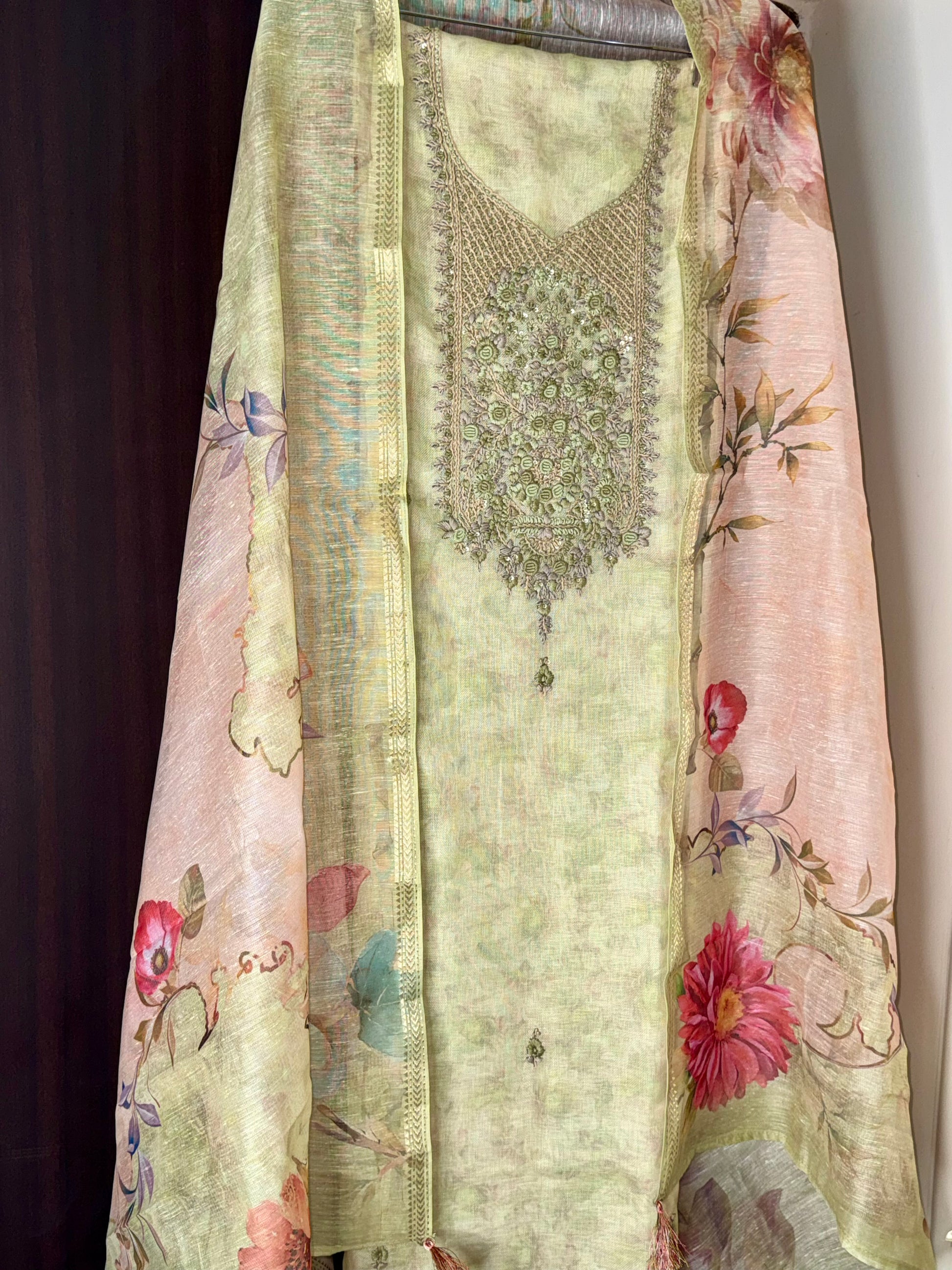 Pastel Green Floral Printed Suit Set