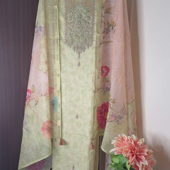 Elevate your everyday elegance with this graceful pastel green suit set, designed for effortless sophistication. Crafted in a soft, breathable fabric, the kurta features intricate tonal embroidery on the yoke that adds a touch of refined artistry. The subtle texture and calming hue make it a timeless addition to your ethnic wardrobe.