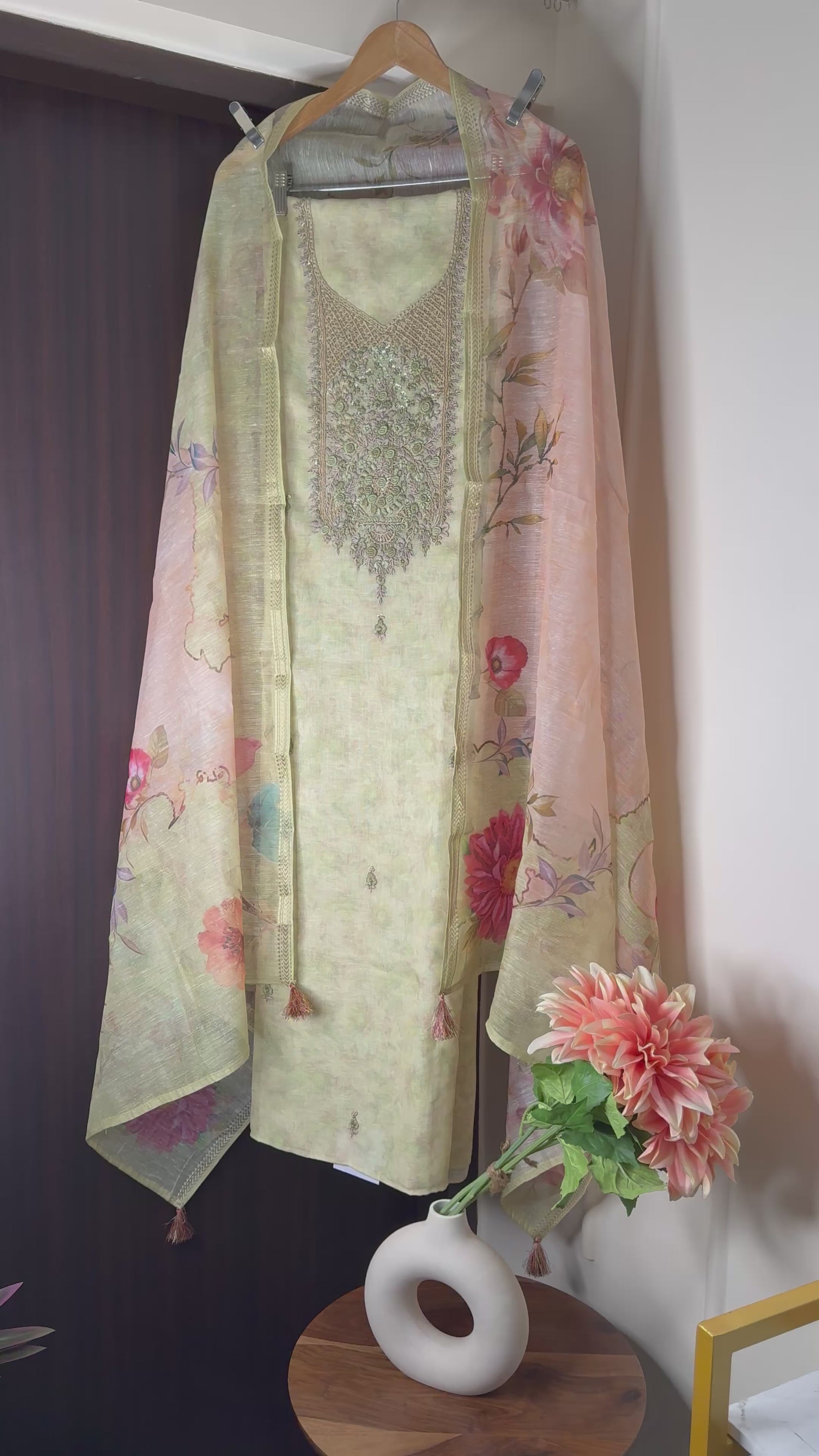 - Kurta with intricate embroidered yoke